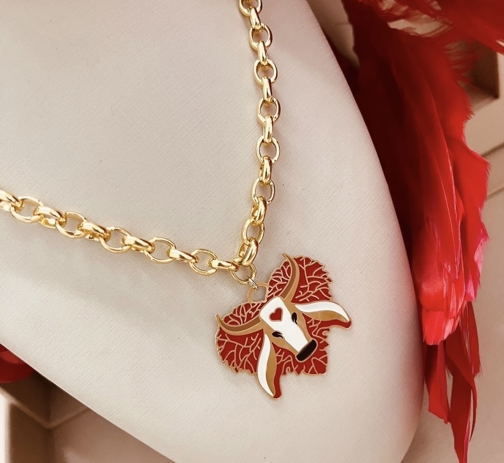 Cada elemento deste colar foi pensado para oferecer não apenas um acessório, mas uma verdadeira declaração de amor ao Boi Garantido! O pingente, com seu design delicado e cheio de personalidade, é perfeito!