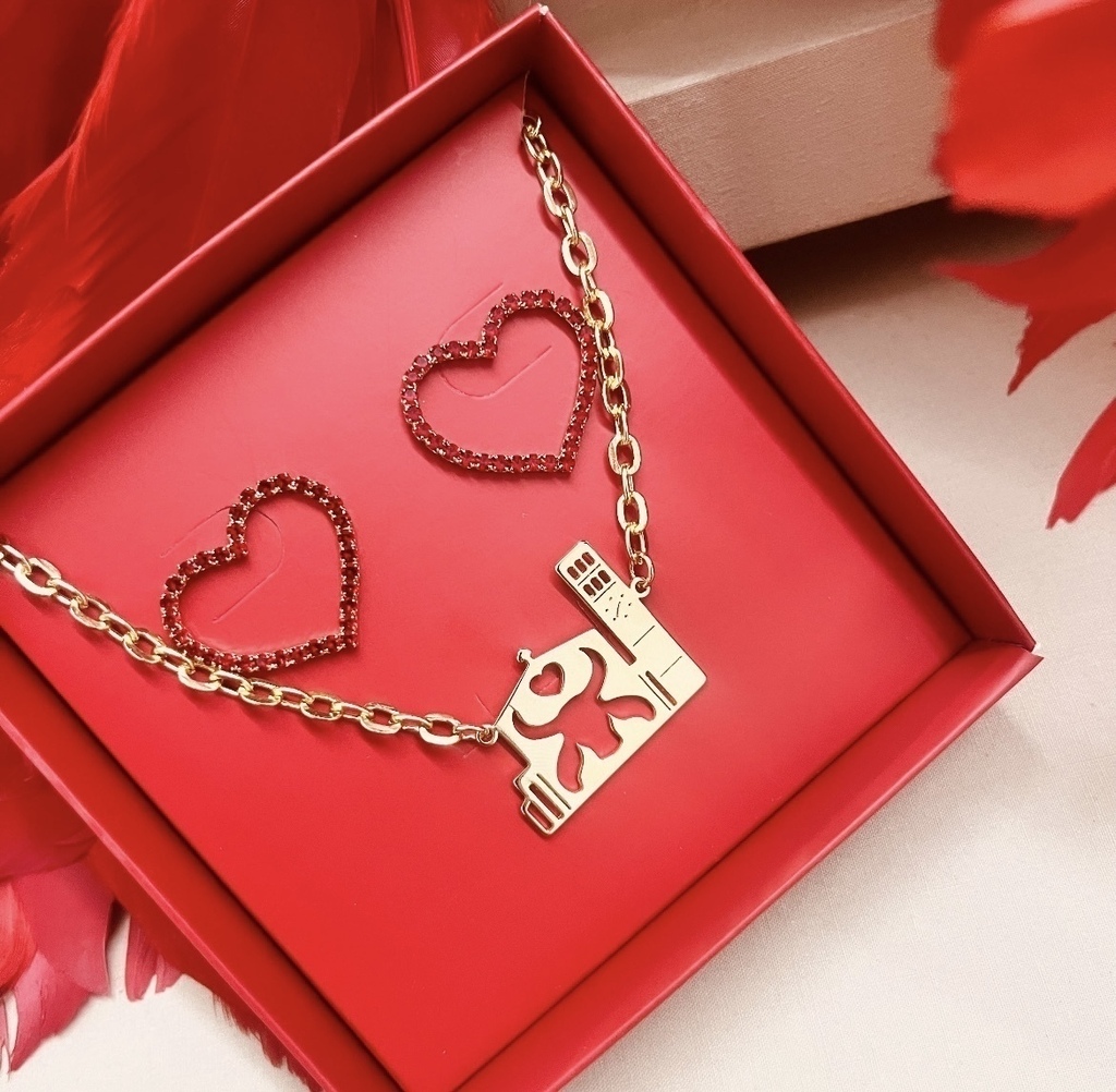 Este conjunto exclusivo reúne um colar e brincosque celebram a beleza e a tradição do Festival de Parintins. O colar apresenta um delicado pingente com a emblemática Catedral de Parintins, símbolo cultural e arquitetônico da região, confeccionado com detalhes minuciosos que destacam sua imponência.