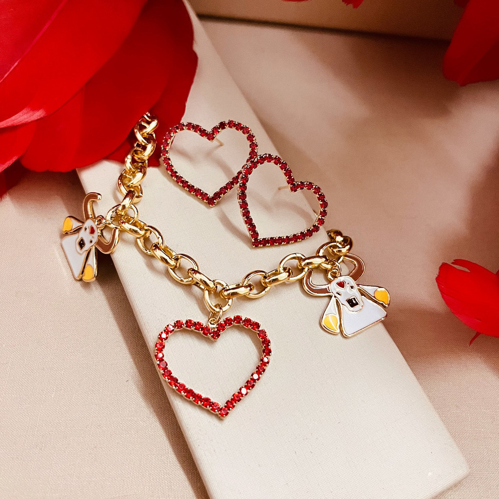 A pulseira é elaborada com detalhes meticulosamente desenhados, incluindo três pingentes que capturam a essência vibrante do folclore, destacando-se o icônico boi garantido. O coração com strass acrescenta um toque de sofisticação e brilho, tornando esta peça ideal para qualquer ocasião.